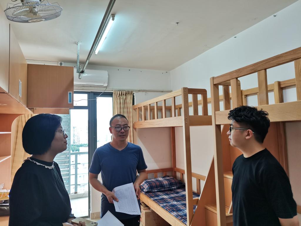 为推进学校文明寝室创建工作,引导学生养成良好的卫生习惯,营造整洁有序的学习和生活环境,以崭新的面貌迎接新学期的到来,8月31日,学院党委副书记黄宝兴,在辅导员彭翔、张玲玲的陪同下,深入学生宿舍开展卫生检查工作。在走访过程中,黄宝兴副书记对卫生情况良好的宿舍进行了表扬,希望他们继续保持整洁舒适的学习和生活环境,对卫生情况较差的宿舍则提出了整改建议,如将内务摆放整齐、卫生勤打扫、宿舍勤通风等,让同学们...