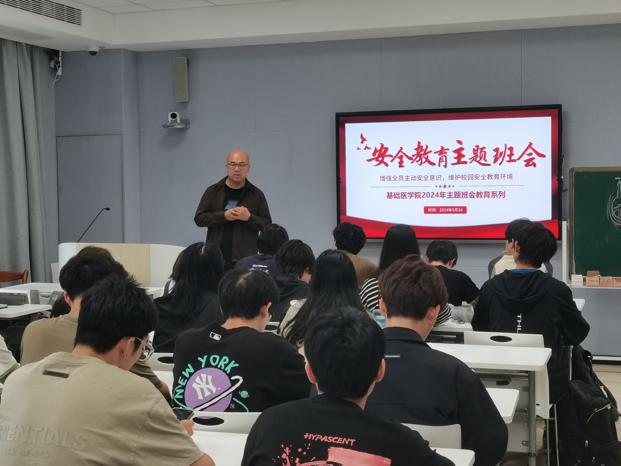 安全教育,是安全治理抓源头、抓防范、抓薄弱环节的重要体现。在五一劳动节假期到来之际,为加强班级同学的安全意识,提高安全知识水平,做好节前安全文化宣传,4月27日上午,NT动漫 举行五一节前安全主题年级大会。全体基础医学专业本科生参会,会议由辅导员彭翔主持。会上,辅导员彭翔强调了“安全过节”的重要性,侧重提到与在校大学生息息相关的国家安全、交通安全、食品安全和消防安全四个方面的安全内容。彭翔通过列举危害国家安全的行为与罪名,...