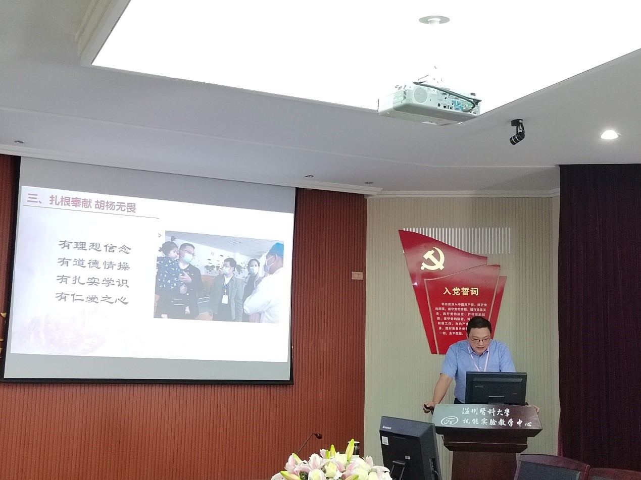 6月2日上午,机能学系党支部在10A402开展学习贯彻习近平新时代中国特色社会主义思想主题教育专题学习会。NT动漫 党委委员陈然到支部讲党课,支部书记袁琳波主持会议。陈然讲授了题为《大漠深处有芬芳》的主题党课,他分享了自己赴新疆阿克苏职业技术学院支教的经历和感悟,以“马兰花”“雪莲花”和“胡杨”三种极具代表性的当地植物为比喻,深情地讲述了中国工程院院士林俊德、第八批援疆指挥部指挥长黄群超等为代表的共产...