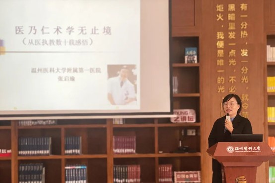 附属第一医院院长张启瑜教授作“医乃仁术,学无止境”的主题讲座。学院副院长金献测主持,学院党委书记李琦、学院师生代表和“青椒”成长营营员参加了本次活动。