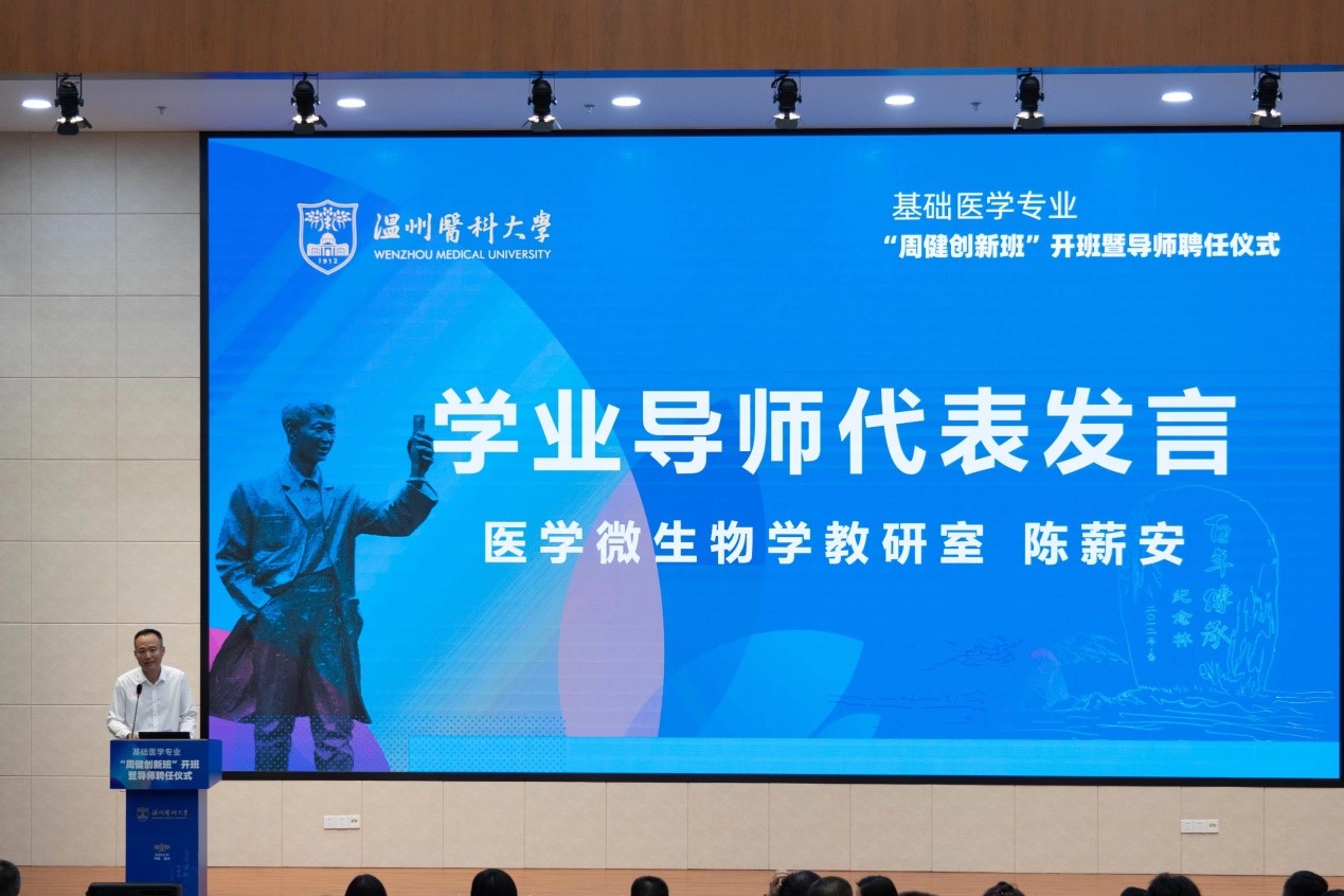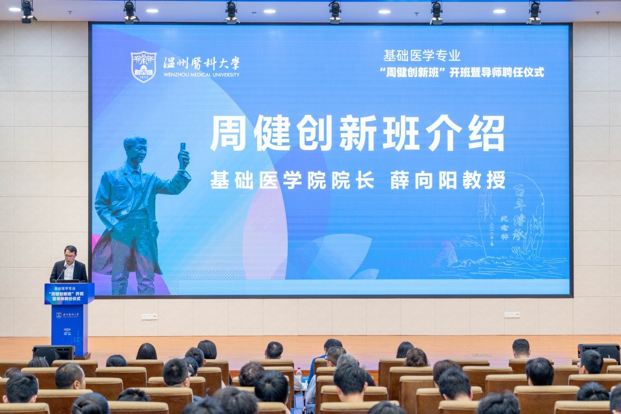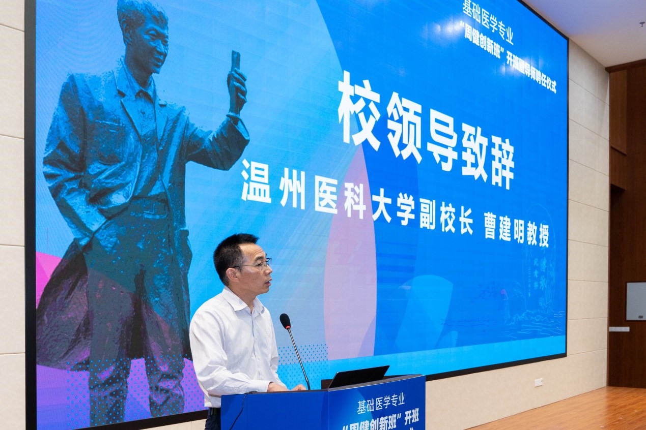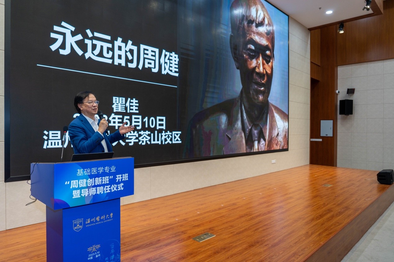 的杰出校友,他爱国爱校、奉献科学的精神是宝贵的精神财富。基础医学专业“周健创新班”的开办,不仅是对周健校友的缅怀致敬,更是对其科学精神的熔铸和传承。他指出,基础医学教育是医学教育的基石和核心,随着健康中国战略的推进,作为浙南闽北赣东区域唯一一所独立设置的医科大学,培育基础医学拔尖创新人才是新时代学校的重要使命。他对办好基础医学专业“周健创新班”提出了三点希望,一是“周健创新班”的学子要好学、好问、好思,刻苦钻研,勇于创新,潜心科研攀高峰;二是学业导师和科研导师要坚持以立德树人为根本任务,深化教育教学改革,努力培育时代新人;三是NT动漫