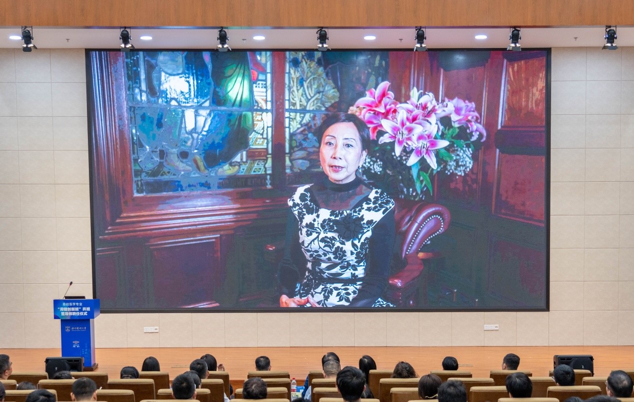 周健校友的妻子孙小依以视频致辞的方式,对基础医学专业“周健创新班”的开班表达祝贺。她从科学家的周健、校友的周健和学长的周健三个方面,深情的讲述了周健对科学研究中纯粹、专注、热爱和执著;展现了周健身在海外,心系母校的校友情怀;展示了“仁肃勤朴 求是奋发”的学风、校风在一代代温医人身上闪光的解释。她寄语基础医学专业“周健创新班”的学子要始终保持好奇心,努力把不可能变成可能,在今后的学习和工作中保持初心,永远感恩,努力前行。