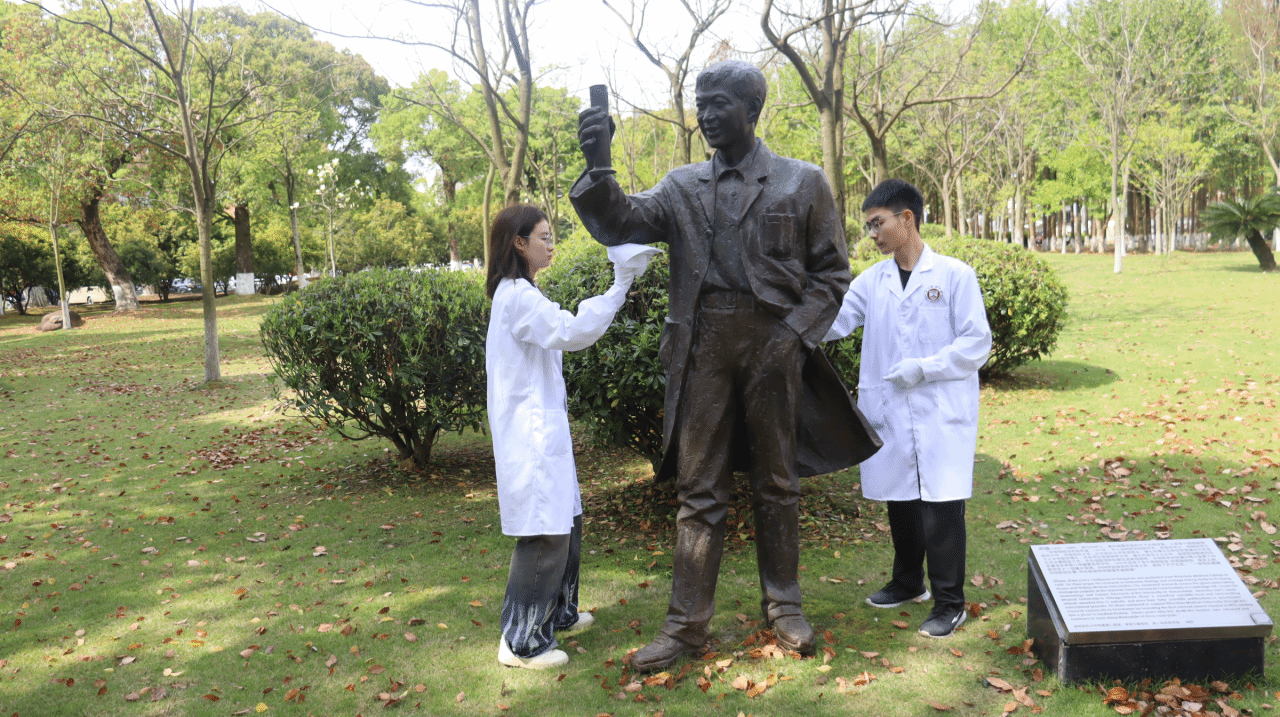 师生在茶山校区周健博士铜像前举行“敬仰 追思”活动。NT动漫