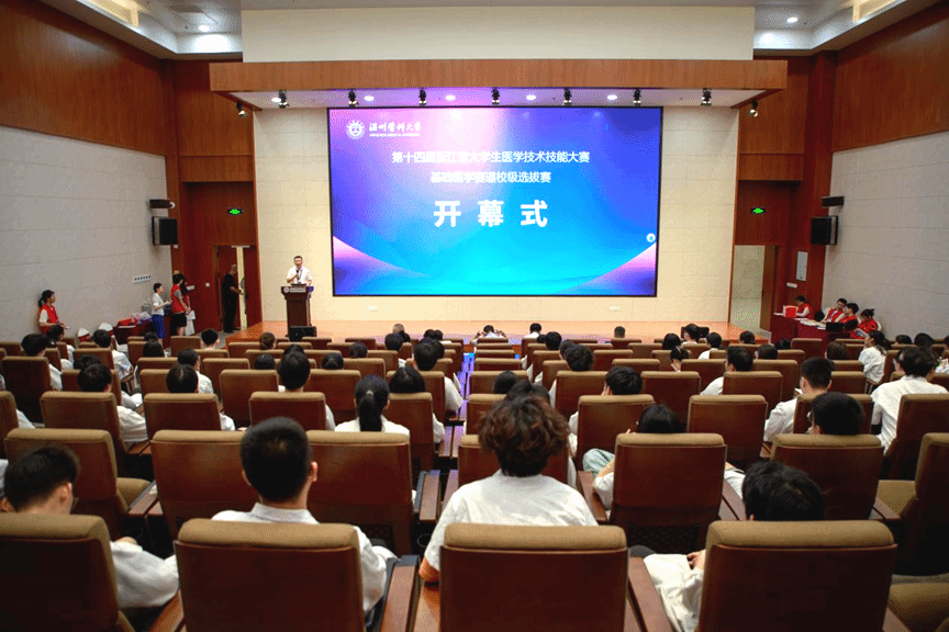 关万春致开幕辞他对莅临指导的评委专家和参赛队伍致以最诚挚的欢迎。他表示,基础医学赛道校级选拔赛是第十四届浙江省大学生医学技术技能大赛的重要组成部分,旨在通过竞赛的形式,检验同学们的基础医学知识掌握情况和实践操作能力,选拔优秀队伍参加更高层次的比赛,以推动医学教育模式的创新与发展,促进医学教育与基础实践的紧密结合,为培养更多优秀的医学人才贡献力量。