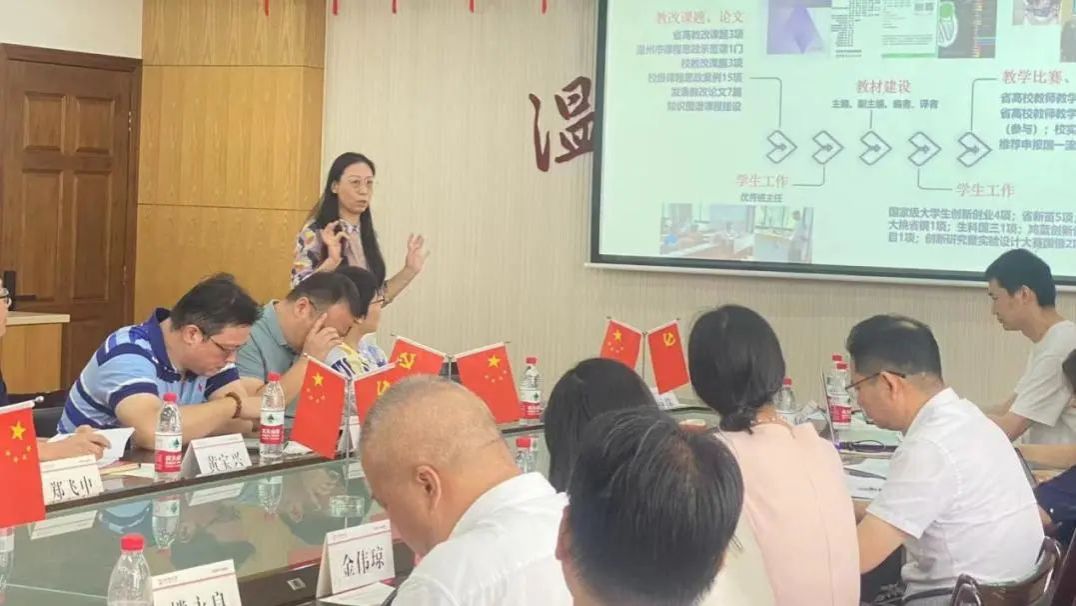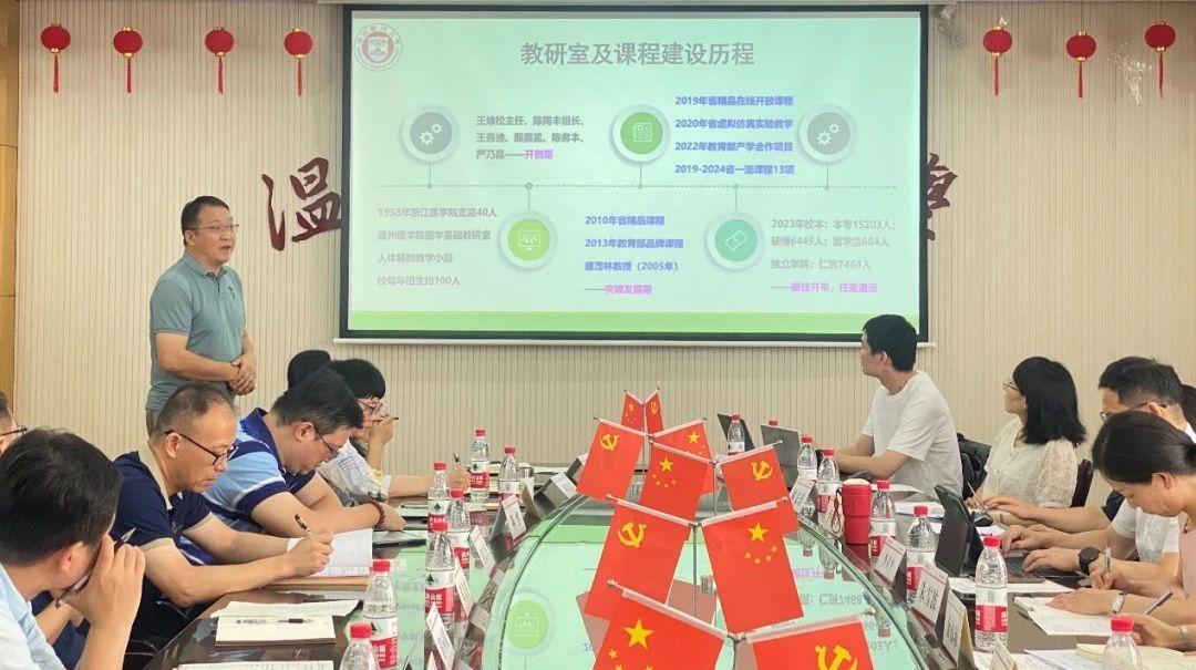 、教育教学、特色亮点、组织保障、未来展望等五个方面进行了详细汇报。接着,相关教研室主任就各自教研室在教学、科研、师资队伍建设等方面的成果与特色进行详细汇报。