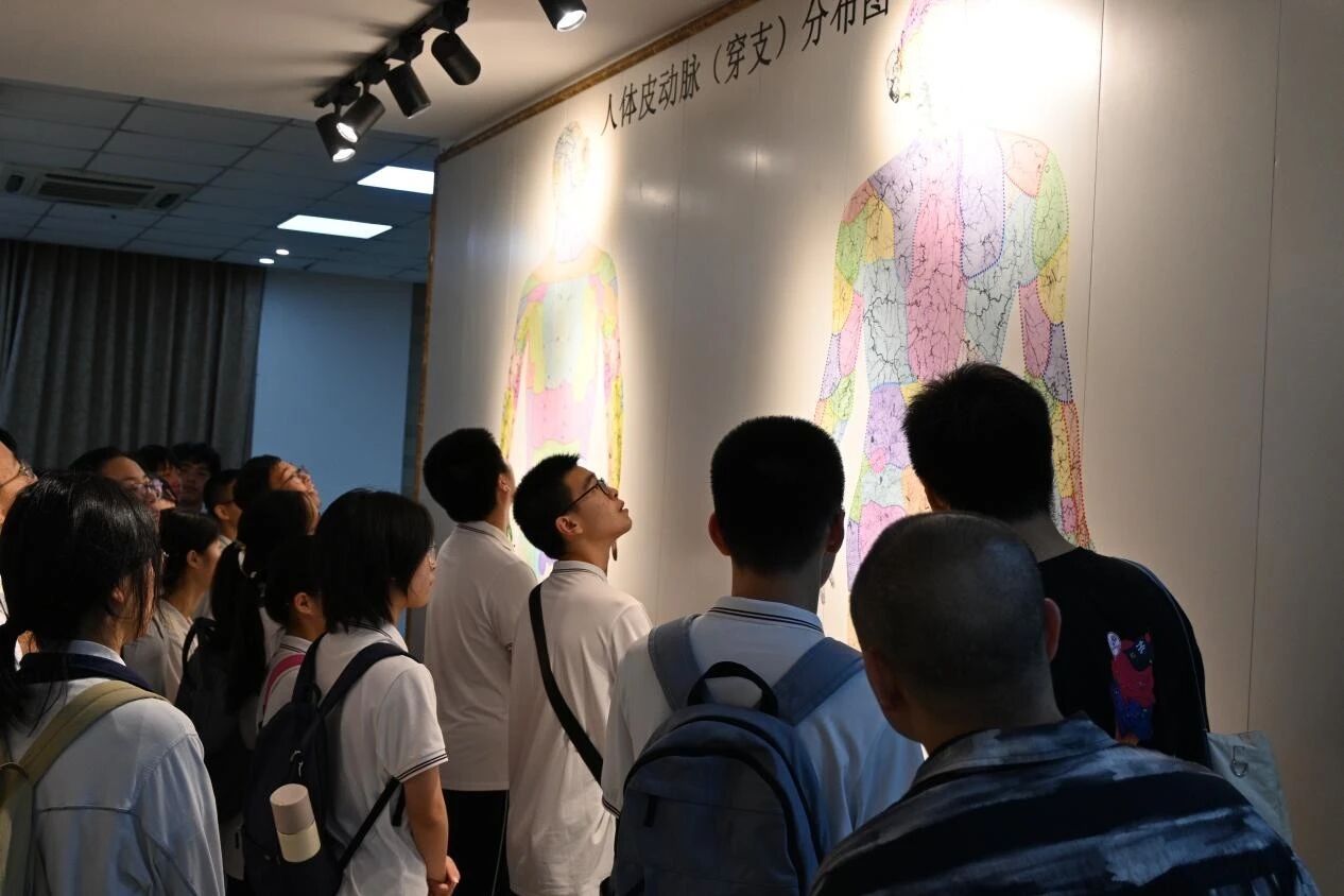 在人体科学馆内,同学在人体科普社讲解员引导下,近距离观察人体标本陈列。通过完整呈现的骨骼、神经等系统标本,学生们将课本中抽象的人体结构知识转化为直观认知。参观过程中,学生们不时驻足凝视,针对标本细节轻声提问,并用笔记本记录要点。当讲解员介绍标本在医学教学中的重要价值时,学生们纷纷表示,此次参观不仅加深了对人体结构的理解,更真切感受到医学学科的严谨性与使命感。