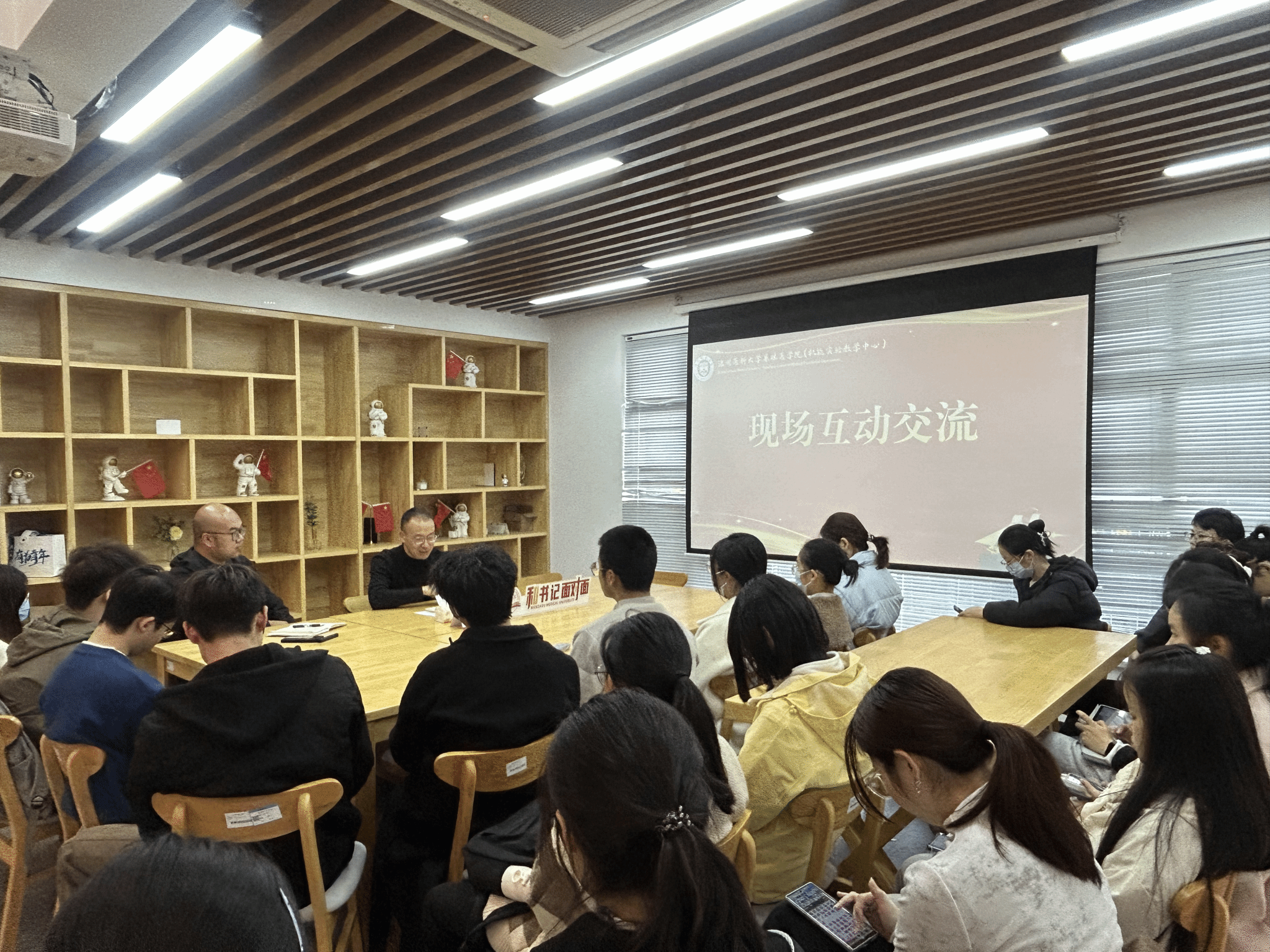 在学生社区“我家书房”开展“和书记面对面”活动。学院党委副书记黄宝兴、学工办副主任彭翔、辅导员张玲玲与学院本研学生代表参加活动。