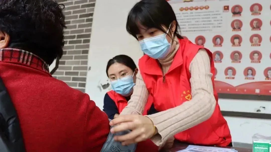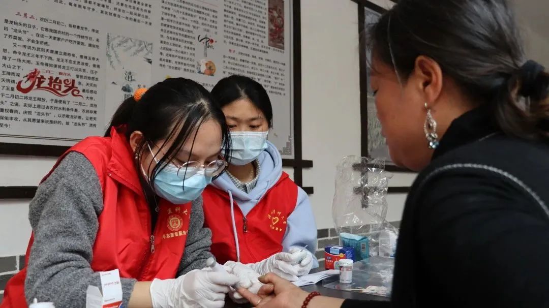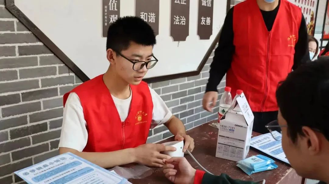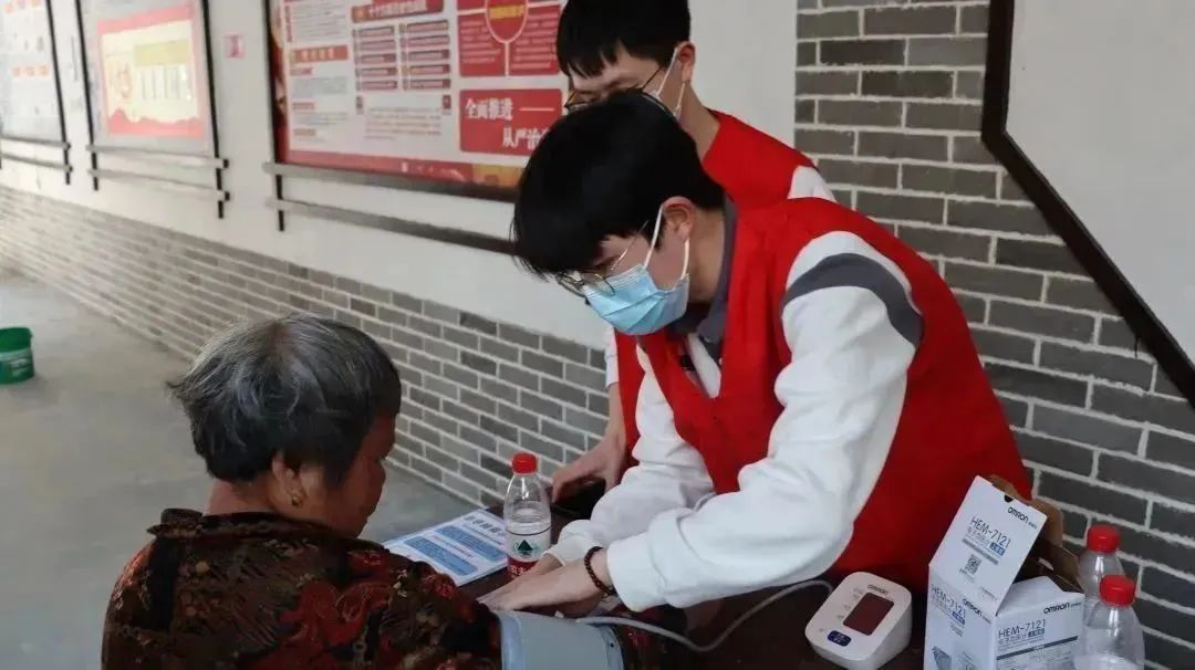 活动中,健行服务社志愿者们积极为村民作新冠后老年常见基础疾病防治和春季流感防护相关知识科普,并在专业教师和医师带领下指导帮助村民进行个人公益健康体检。