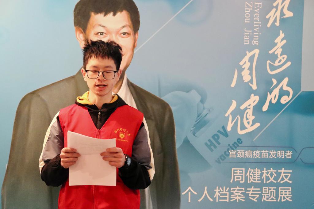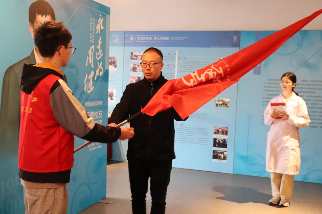 大学生健行志愿服务社于我校周健博士专题展现场举行年度志愿服务活动出征仪式。大学生健行志愿服务社将围绕“全球消除宫颈癌”行动的年度主题,开展更多特色鲜明、内容丰富、形式多样的志愿服务活动。学院党委副书记黄宝兴为健行志愿服务社出征仪式授旗,服务社全体志愿者现场宣誓。