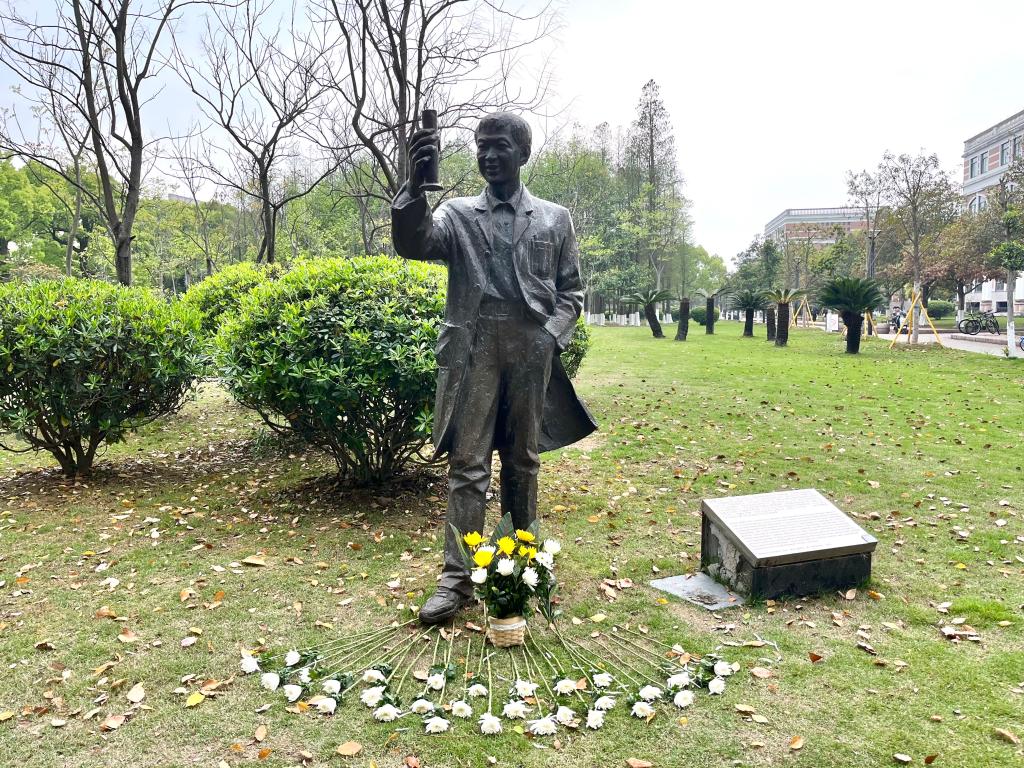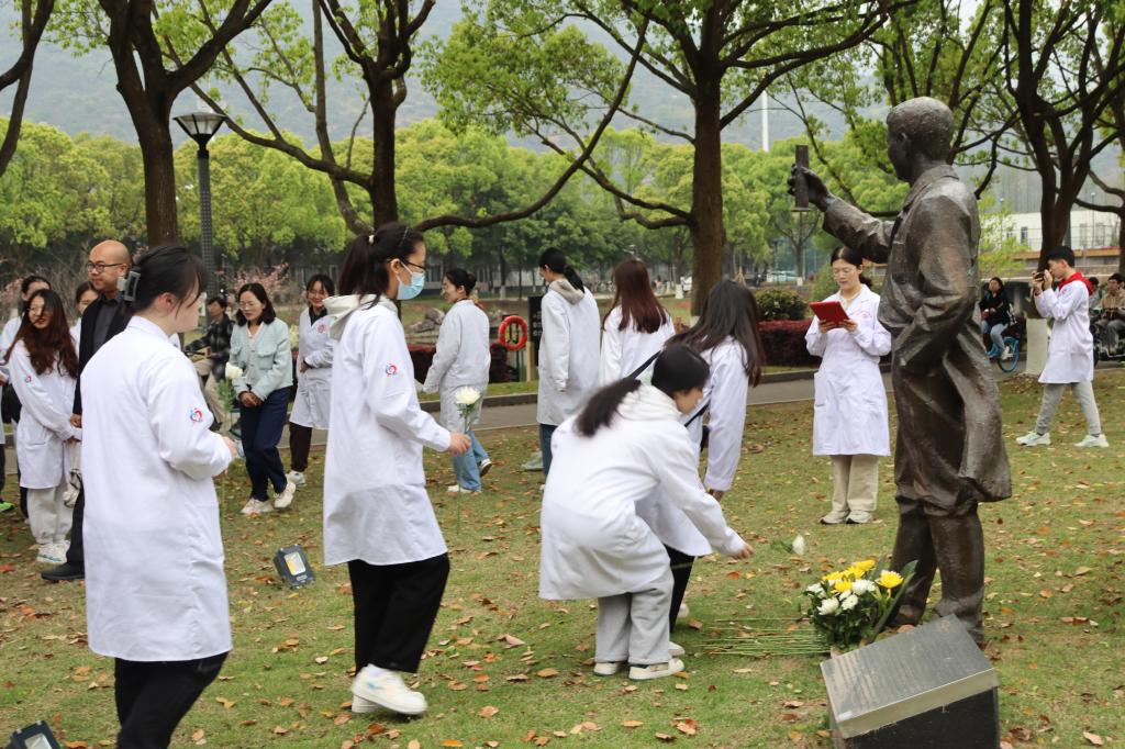 在现场,基础医学周健创新班和大学生健行志愿服务社的同学还分享了他们“眼中的周健”,并向周健博士铜像献花。