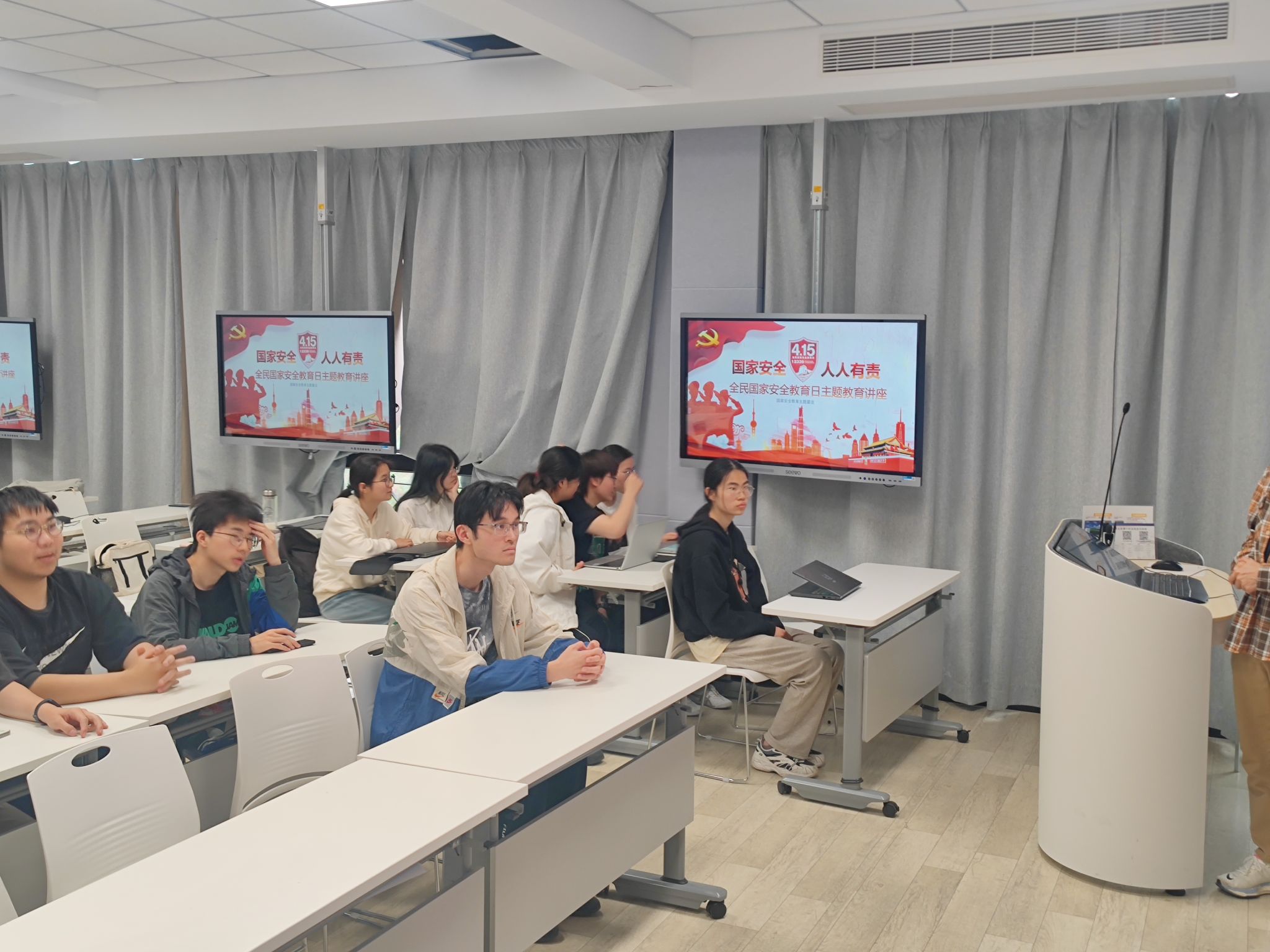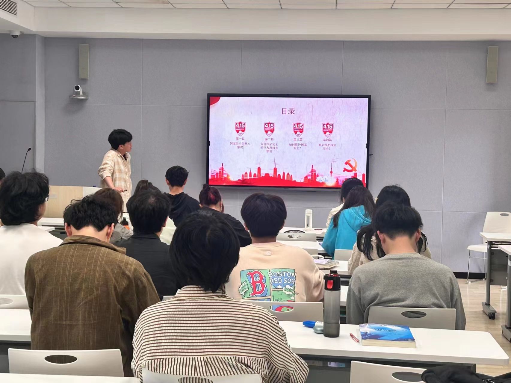 组织开展“国家安全 人人有责”主题系列班会,让总体国家安全观的宣讲传播深入班团基层。“国家安全包括哪些方面?危害国家安全的行为有哪些?……”学院学生党团支部支委、“青马工程”学员纷纷上台开讲,引导青年学子牢固树立国家安全意识。