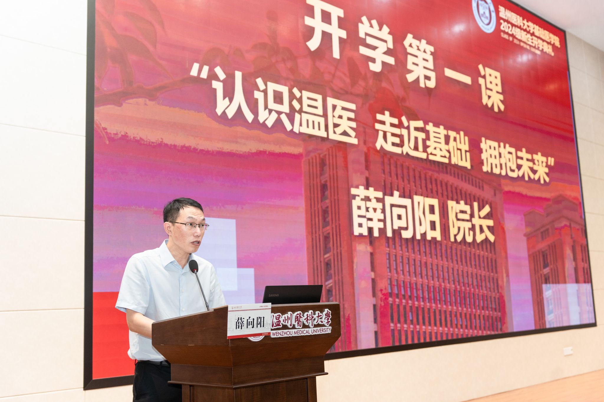 2024级新生开学典礼圆满落下帷幕。殷殷寄语犹在耳畔,祝愿新同学们能够在温医大的校园里,秉持“仁肃勤朴,求是奋发”的校训,怀揣热烈的激情与昂扬的斗志,砥砺奋进,披荆斩棘,于此之后的人生之路上,鹏举万里,留取青云,一同书写不负青春韶华的万象华章!