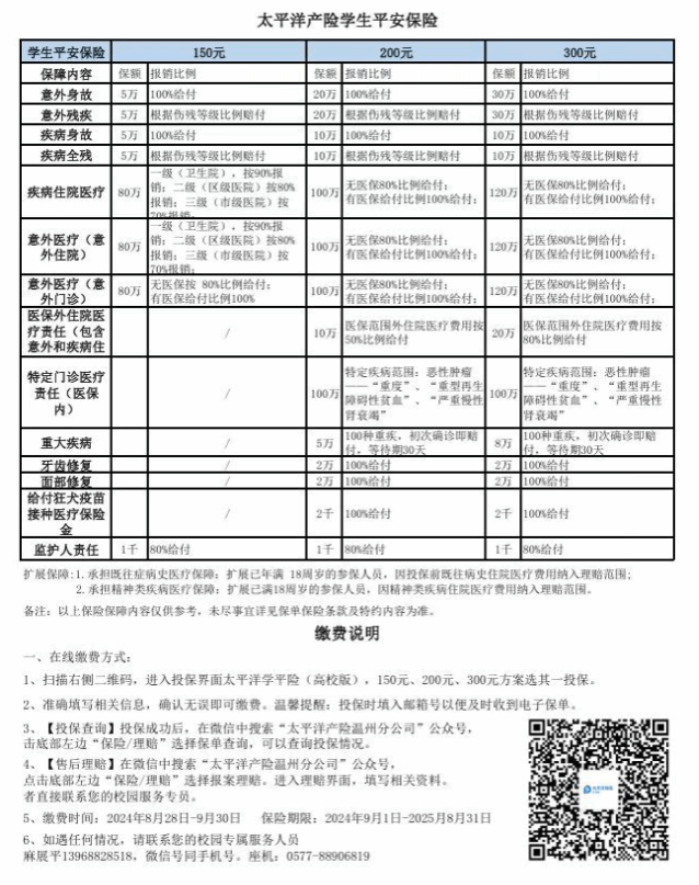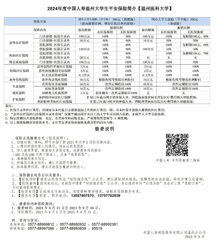 如学生想得到更好的医疗保障,学生在投保大学生基本医疗保险(20元)的基础上自愿参保学平险:中国人寿、太平洋产险、太平洋寿险。