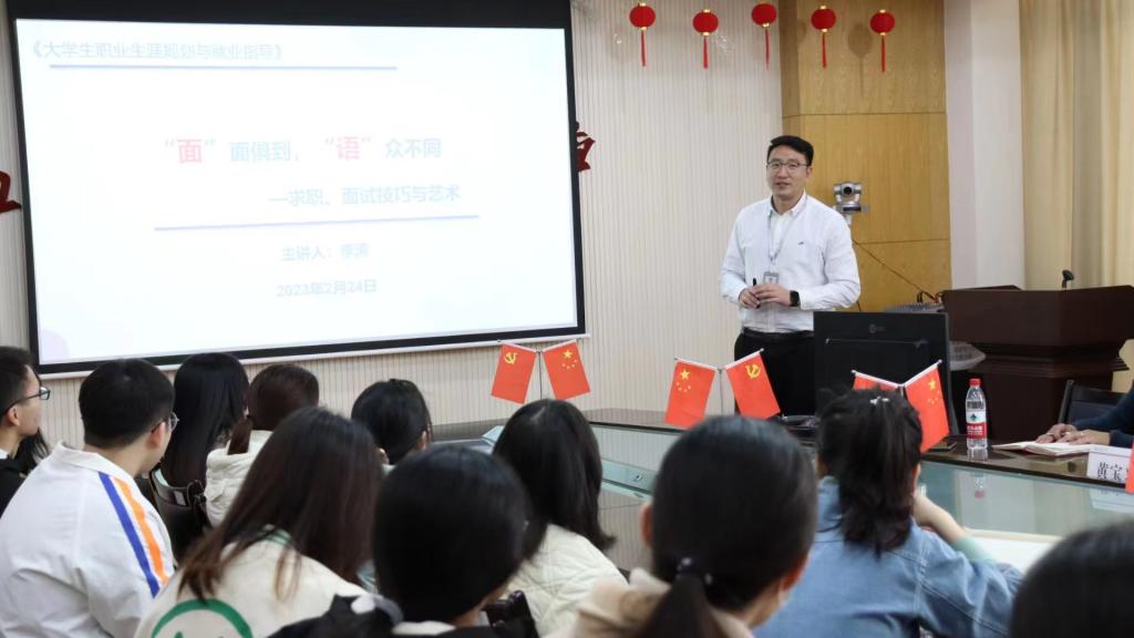 开展就业工作专题交流会暨求职技巧培训会,本次交流嘉宾为我校《大学生职业生涯规划与就业指导》课程主讲李涛老师。学院党委副书记黄宝兴出席本次活动,全体毕业班研究生和本科生代表参加交流活动。