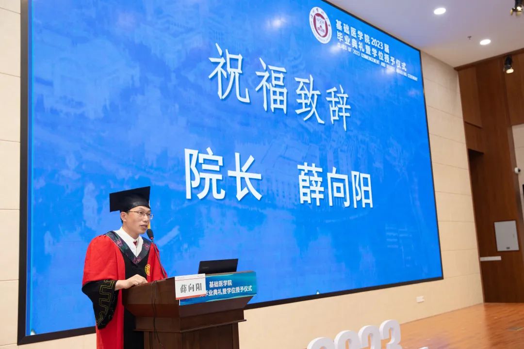 薛向阳院长为毕业生致辞,他代表学院向毕业生表示衷心的祝贺,向为毕业生的学习和生活付出辛勤劳动的老师和家人,致以诚挚的感谢和崇高的敬意!他提到,同学们作为国家建设的新生力量,要深刻认识到自己所肩负的使命与责任,坚定理想信念,“在危机中育新机,于变局中开新局”,在新的征程中一路向前,勇敢追梦,成为更好的自己。
