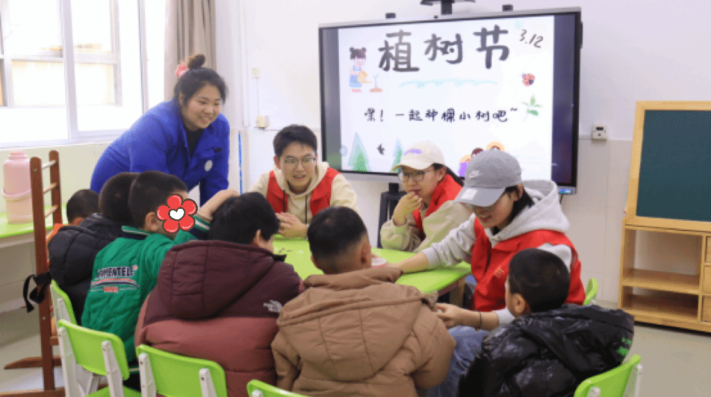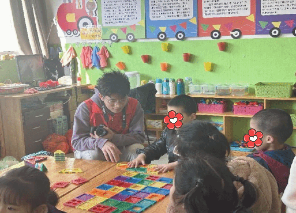 活动伊始,李敏爱校长和负责老师介绍了学校和小朋友们的基本情况以及需要注意的事项。活动现场,同学们秉承细心和耐心的原则引导和陪伴着小朋友们。在老师的介绍下,同学们来到不同的班级,与小朋友们同上“一堂课”,很快建立起了大手牵小手的友谊。随后,小朋友和大朋友们便开始在寓教于乐的氛围中共同学习和成长。首先,大家一起搭积木,在共同努力下,各具特色的积木便搭好了。恰逢植树节,大家一起交流,随后一位同学化身“老师”现场指导并与小朋友们一起体验“种植”的快乐,期待着种子发芽。最后,李校长带领同学们走进画室,介绍小朋友们的优秀作品,同学们纷纷为他们的创意和努力点赞。