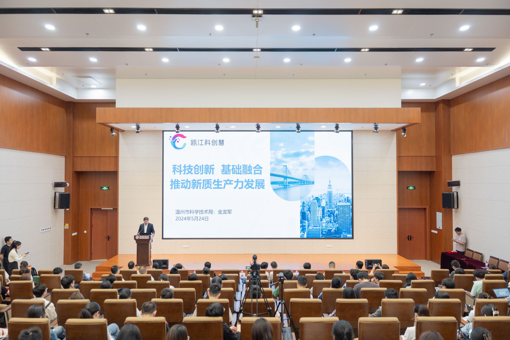 开幕式后,金龙军作《科技创新 基础融合 推动新质生产力发展》专题报告。他强调,习近平总书记对科技创新工作前所未有、一以贯之的高度重视,温州地区生命健康产业具有“五医”融合发展、“双核引领、三带布局”空间布局的好生态,企业招引好政策,中国眼谷与中国基因药谷好平台等特点。他通过生命健康产业关键领域发展现状,提出新质生产力驱动下挑战与机遇并存,并针对基础临床融合的关键领域给予未来趋势预测与战略建议。