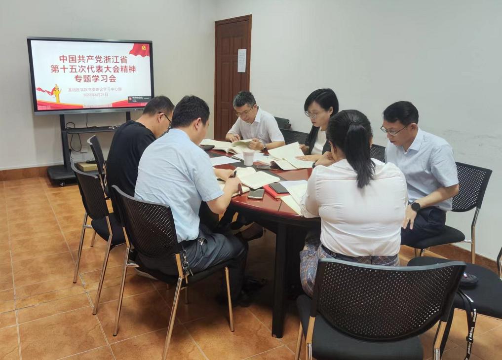 党委理论学习中心组成员在7A203会议室召开党委理论学习中心组学习会,专题学习中国共产党浙江省第十五次代表大会精神,并开展学习研讨。6月28日至7月4日,学院各党支部围绕中国共产党浙江省第十五次代表大会精神开展集中学习,学院师生结合自身工作和学习,展开热议。
