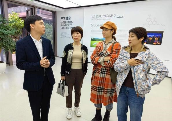 浙南美谷总负责人洪国赢带领各位老师参观了生命健康、生命因子、产学融合三大展区和研发实验室等,介绍了美谷的组成机构、产品和发展简史,并带领大家体验“泉的传说”系列产品。
