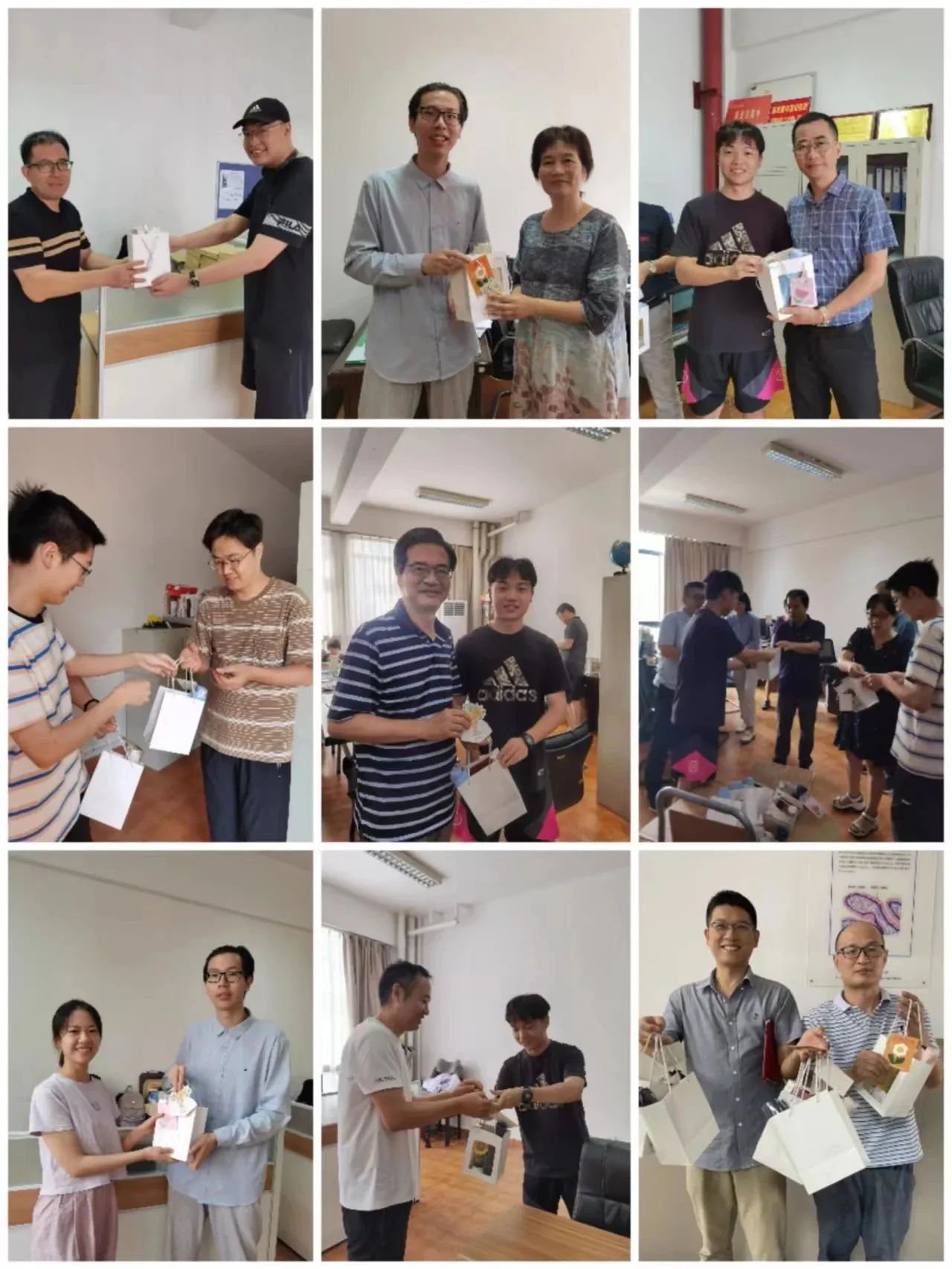 教研室、实验室里和会议室里,基础医学专业学生代表送上了雨伞、润喉糖、向日葵花和贺卡等礼物,向辛勤付出的老师们表达了深深的敬意。“老师,您辛苦了,祝您节日快乐!”,表达了莘莘学子对老师们无私奉献精神的感激之情。一束鲜花,一声祝福,满满的仪式感,让老师们感受到学院的温暖,感受到了师生之间的深情厚谊,开学第一天的老师们脸上都洋溢着幸福的笑容。这些洋溢着幸福的笑脸,让校园充满了浓郁的节日氛围,同时也在师生之间传递着一份深深的感动和温暖。桃李无音,明月随心,盛行千里,不忘师恩。