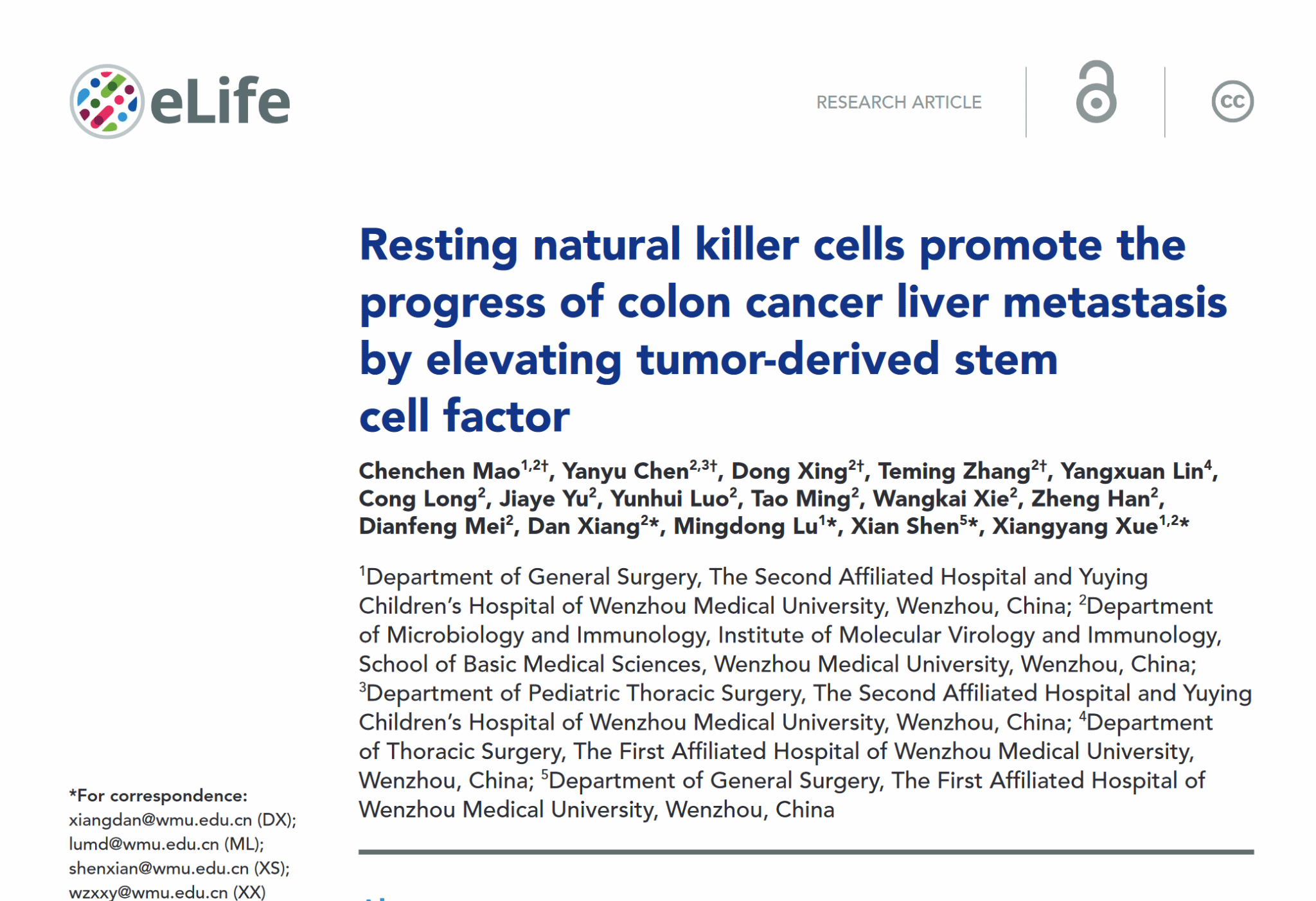 近日,薛向阳教授及沈贤教授团队在自然科学领域权威期刊《eLife》正式发表题为“Resting natural killer cells promote the progress of colon cancer liver metastasis by elevating tumor-derived stem cell factor”的一项重要研究成果。学院毛晨晨博士研究生是该论文第一作者。该研究首次发现,GZMK+静息自然杀伤细胞能够促进肠癌细胞的恶性表型,并且在结肠癌肝转移发挥促进疾病进程的作用。这一发现为结肠癌肝转移的临床治疗提供了新的思路和策略。