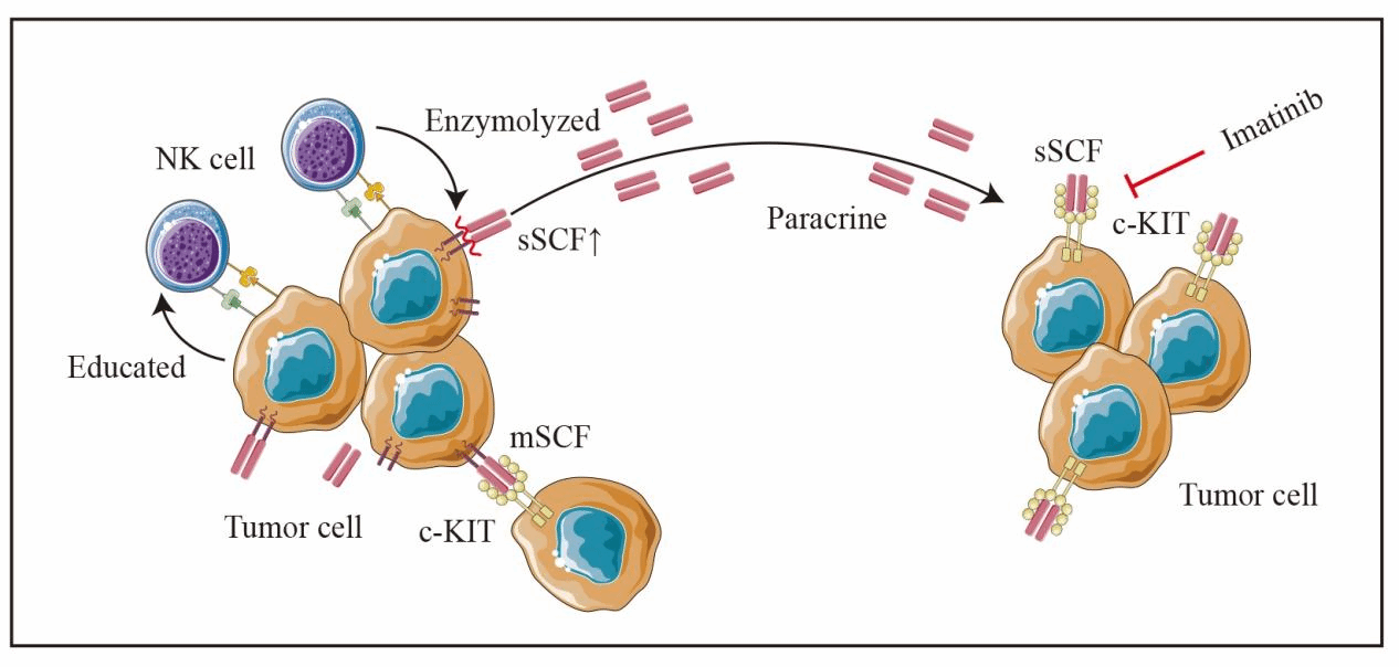 研究团队通过一系列实验证明,结肠癌细胞与NK细胞共培养后能够驯化NK细胞成为肿瘤浸润NK细胞表型,并且共培养的上清液能够促进结肠癌细胞的生长和转移。研究进一步揭示了SCF是共培养上清中促进结肠癌细胞恶性表型的关键分子,而伊马替尼能够阻断其促进肿瘤细胞恶性表型的效应。这一发现不仅拓展了对肿瘤免疫微环境中NK细胞的认识,也为转移性结肠癌的临床治疗提供了新的方向和思路。