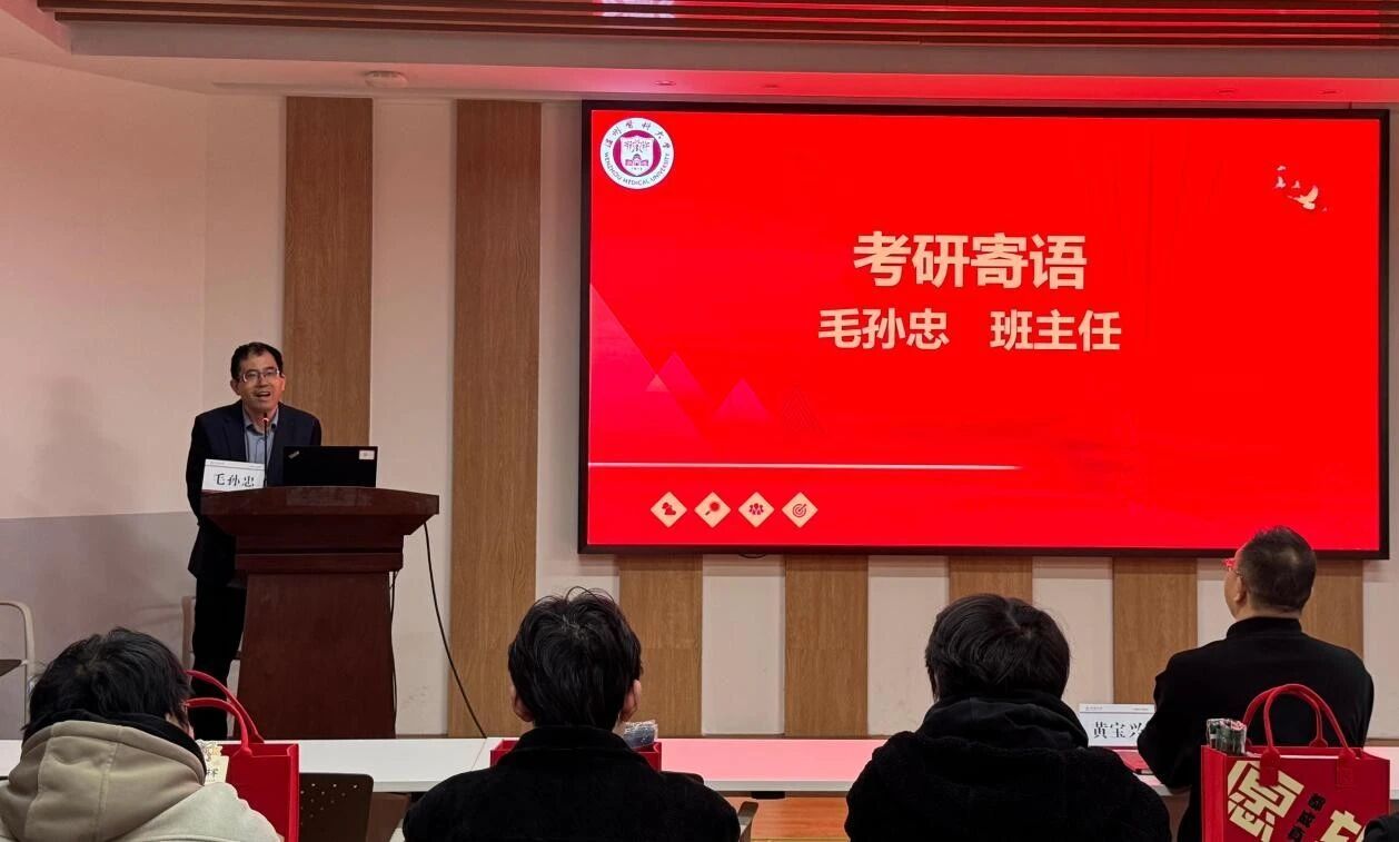 “廿载启新 研路致远”考研暖心助力会在向阳工坊温情举行。学院党委副书记黄宝兴、班主任毛孙忠,学工办、教学办及2026届考研备考本科生齐聚一堂,以关怀为翼,为追梦学子赋能续航。